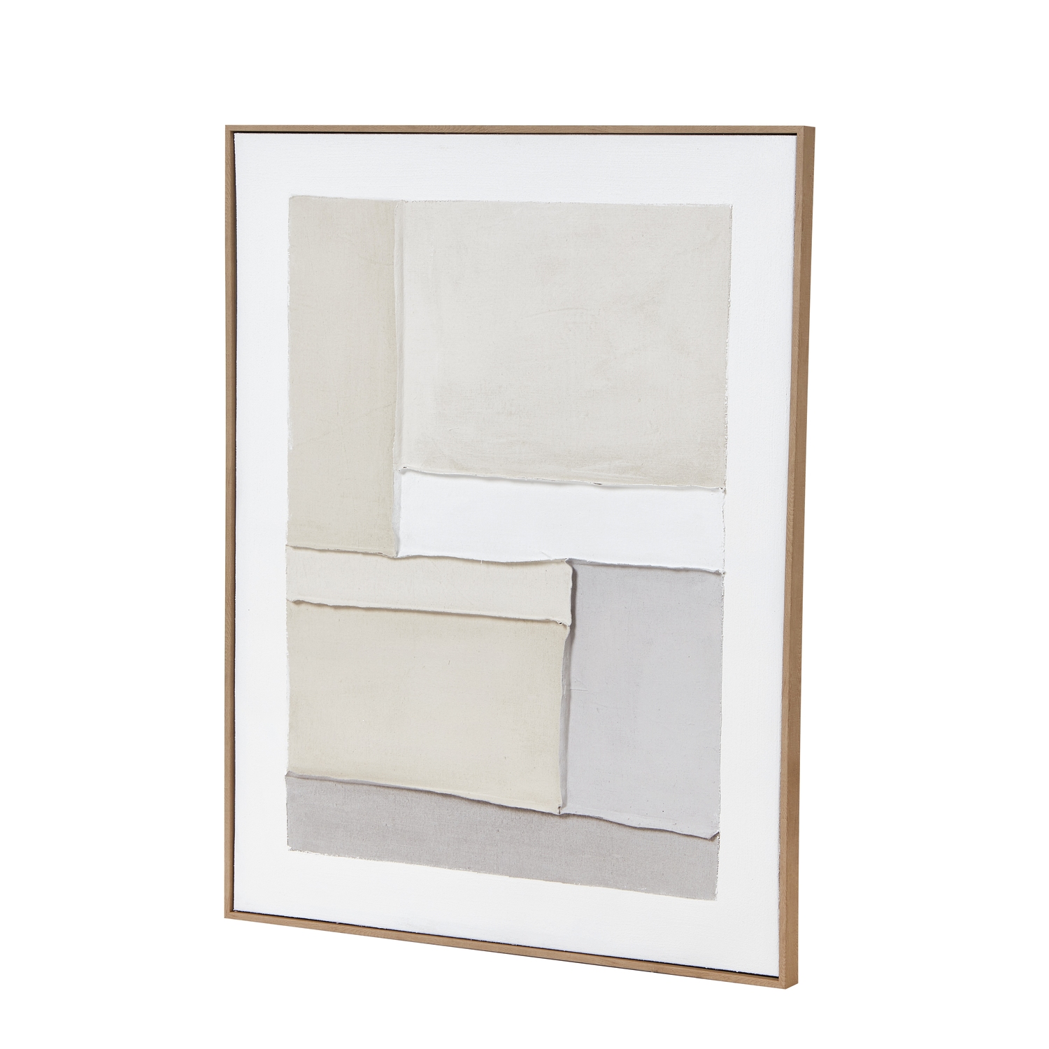 This sophisticated abstract canvas brings minimalist elegance to any contemporary space. The thoughtfully layered geometric composition in soothing neutral tones of cream, white, and soft grey creates a sense of depth and architectural interest. Each section appears to float weightlessly within the clean-lined champagne frame, offering a modern take on traditional colour field painting. Perfect for design-conscious clients, this versatile piece complements Scandinavian, modern, and transitional interiors. Its understated palette pairs beautifully with natural materials like blonde wood, textured linens, and brushed metals. Position above a sleek console table or as part of a curated gallery wall for maximum impact. The subtle textural elements and precise arrangement of forms appeal to both residential and commercial spaces – from upscale hotel lobbies to executive offices. This investment piece offers enduring style that will resonate with customers seeking refined, gallery-worthy art that makes a quiet yet powerful statement. Size and craftsmanship details ensure this canvas meets professional standards while its timeless design promises strong resale potential for your discerning clientele.Please not this can only be hung vertically.