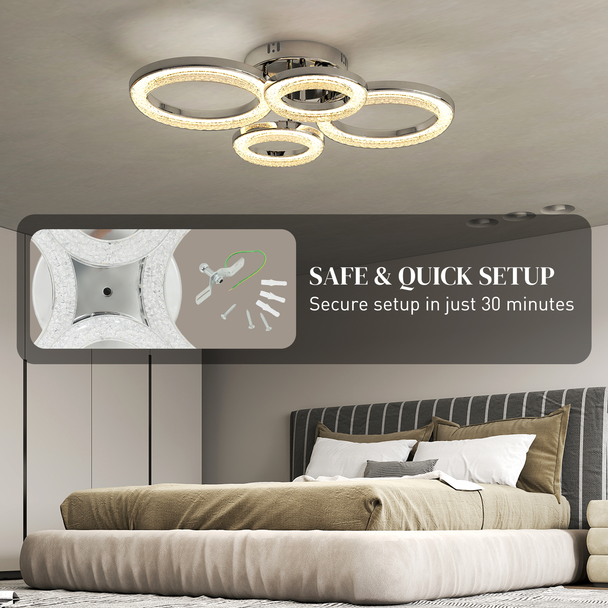Tired of your living room feeling dull and the lighting never quite right for the occasion? A single, harsh light can make gatherings feel unwelcoming and your decor look flat. This HOMCOM LED ceiling light transforms your space. Effortlessly switch moods with your wall switch, from a warm glow to bright light. Its stunning four-ring design becomes an artistic centrepiece, bathing your room in brilliant, inviting illumination and reflecting your modern taste.