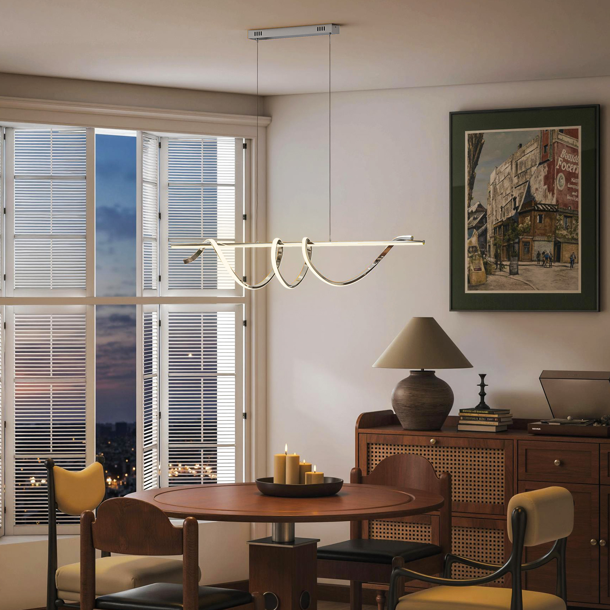 - Modern artistic design: Featuring a 120 cm length and a graceful spiral form, this integrated LED pendant light doubles as a sculptural statement above your table—blending art and function into an elegant centrepiece that reflects your refined taste