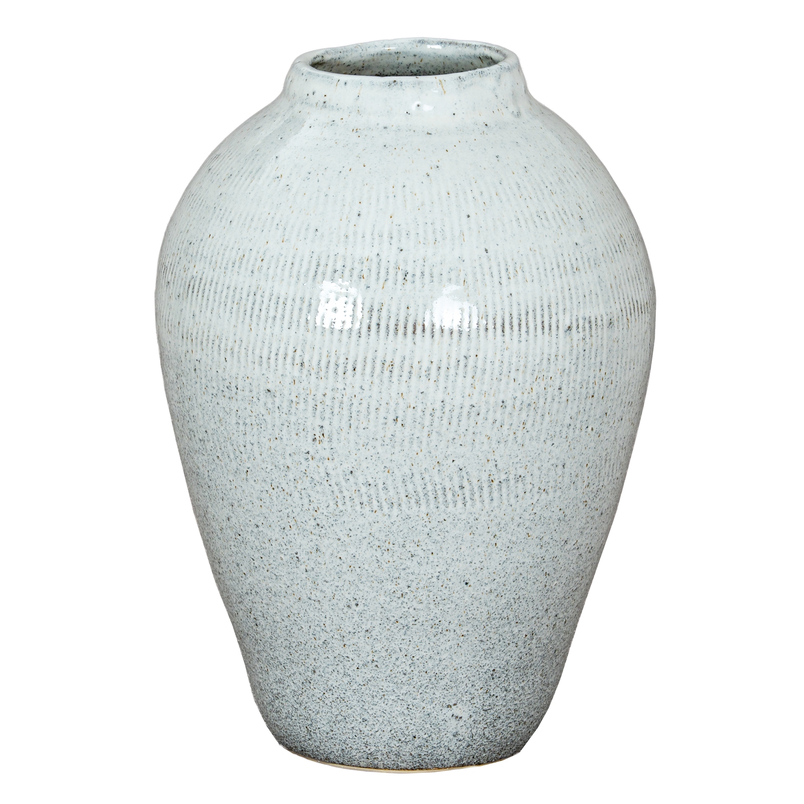 Sculpted with a broad, gently rounded form that narrows gracefully towards the neck, the Kemi Large Olpe Vase captures attention through its bold proportions and quietly confident design. The exterior presents a refined surface that plays with light and shadow, offering depth and character whether positioned as a centrepiece or accent. Substantial in presence yet versatile in placement, it enriches both modern and traditional interiors. Part of The Ceramic Collection, it works seamlessly alongside complementary accessories to create a unified retail display that appeals to discerning home stylists. Its muted, contemporary colour tone allows it to harmonise with a spectrum of schemes, from soft neutrals to richer, moodier palettes. Ideal for showcasing artificial blooms or foliage, its wide opening accommodates fuller arrangements while maintaining balance in proportion. Pair it with the understated elegance of the Smoked Sage Glass Tall Fluted Vase for textural contrast, or the Garda Grey Stefanie Vase for tonal coordination. For a layered ceramic display, the Darcy Small Globe Vase adds curvature and intimacy, while the Fen Olpe Vase reflects a similar profile with a subtler scale. Together, these pieces provide your customers with mix-and-match possibilities, enabling the personalisation of home displays without straying from a cohesive aesthetic. This vase?? ability to bridge decorative function and visual impact makes it a strong retail investment, encouraging repeat purchases from customers expanding their collection. Trade buyers will value its adaptability for in-store styling and online merchandising, where its distinct silhouette and tactile finish capture attention instantly. Its durable ceramic construction ensures long-lasting appeal, retaining its beauty through seasonal trends, positioning it as a consistent best-seller within the range.