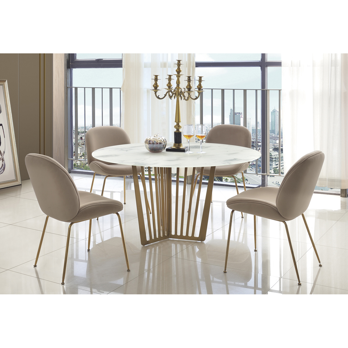 Marble Effect Glass Top with Stainless Steel Frame Gold 1300W Round x 750H