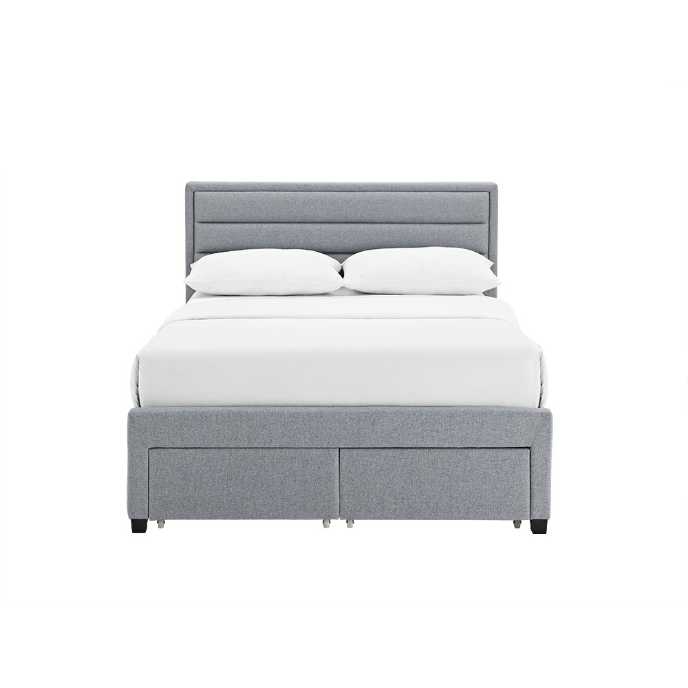 Paisley 4 Drawer Linen Fabric King Size Bed Grey