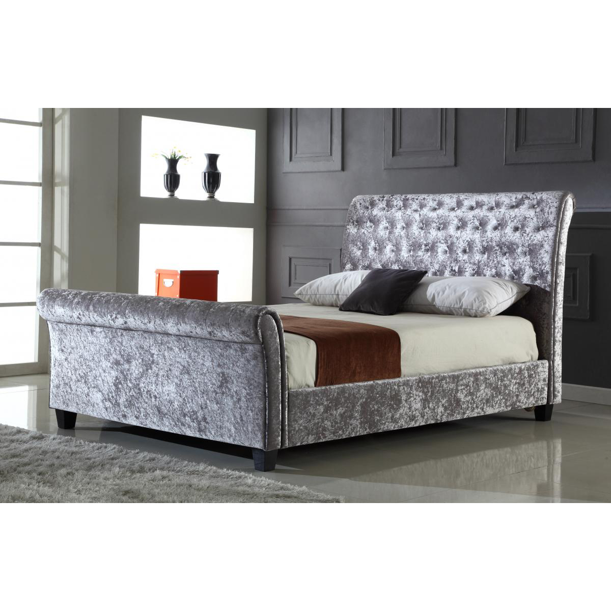 This stunning bed is built for both durability and chic appeal, making it an ideal centerpiece for modern and classic interiors alike. The sturdy frame guarantees longevity, offering you a reliable and fashionable sleep solution. Whether you’re revamping your sleeping space or furnishing a new home, the Serenity Crushed Velvet Double Bed Silver promises unmatched comfort and aesthetic pleasure. Its versatile design makes it suitable for various bedding styles and color palettes.