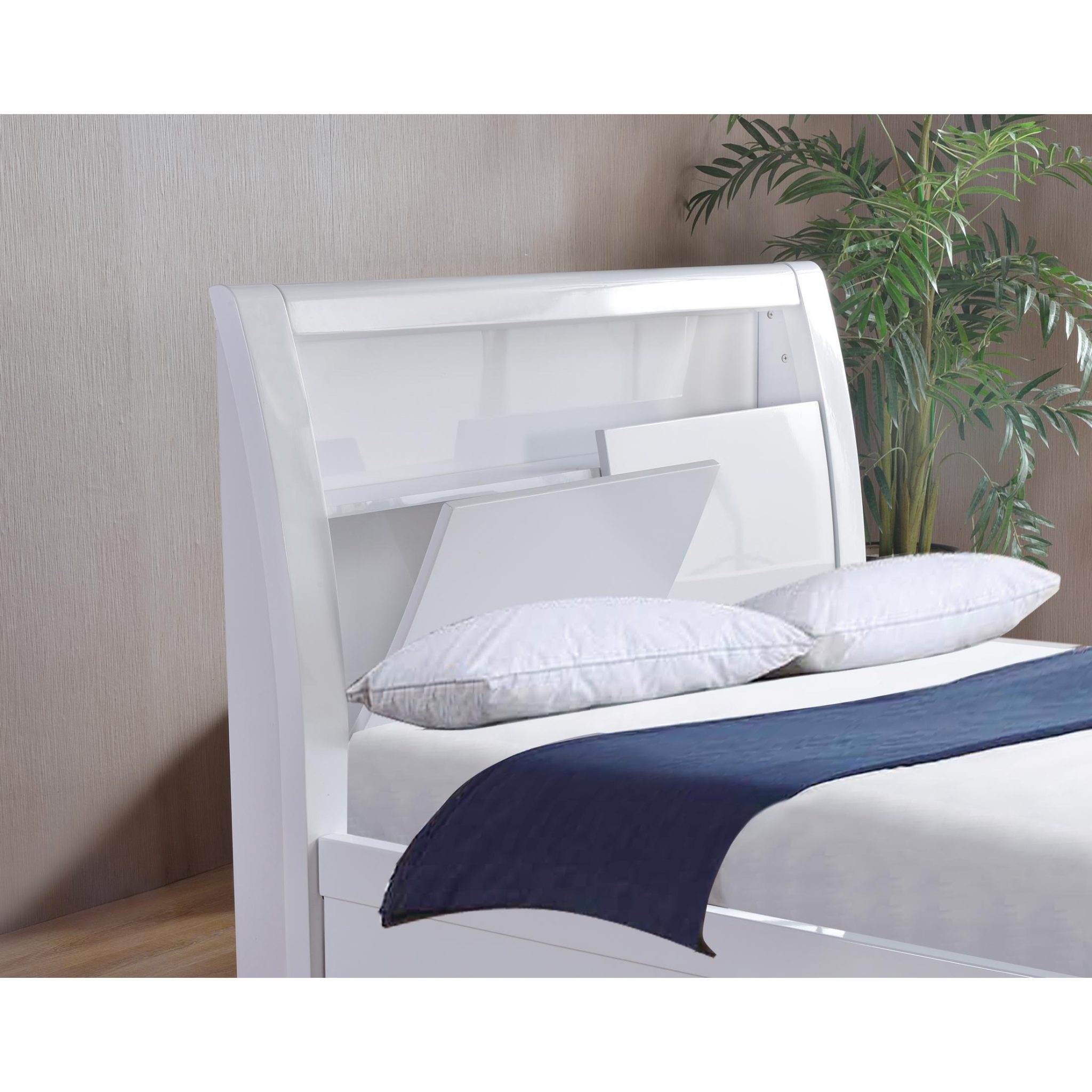 Tanya Storage High Gloss King Size Bed White, LED in headboard