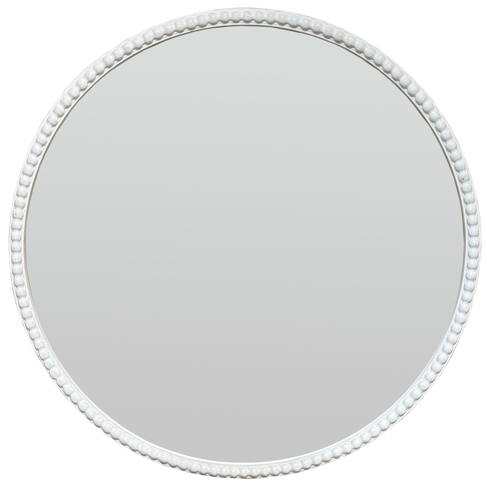 A delicate fusion of rustic charm and refined detail defines this mirror’s character, with its thoughtfully distressed washed wood frame creating an airy, light-filled ambiance in any space. The intricately woven beaded pattern encircling the frame adds depth and dimensional interest, while the weathered finish tells a story of enduring style that resonates with both traditional and modern sensibilities. The carefully balanced proportions make it an ideal focal point for entryways, living spaces, or retail displays, where it reflects light and enhances spatial perception. For retailers seeking to create cohesive merchandise displays, this mirror pairs exceptionally well with metallic wall sconces, woven wall baskets, and vintage-inspired ceramic vases. The neutral palette of the frame allows for seamless integration with both cool and warm-toned decorative elements, while the beaded detail opens possibilities for coordinating with textured throws, beaded chandeliers, and similarly detailed picture frames. The circular format provides flexibility in positioning, whether centered above console tables or grouped with other decorative mirrors to create an eye-catching wall arrangement. This mirror represents an investment piece that promises strong consumer appeal across various demographic segments, from urban apartment dwellers to suburban homeowners seeking statement pieces with understated refinement.