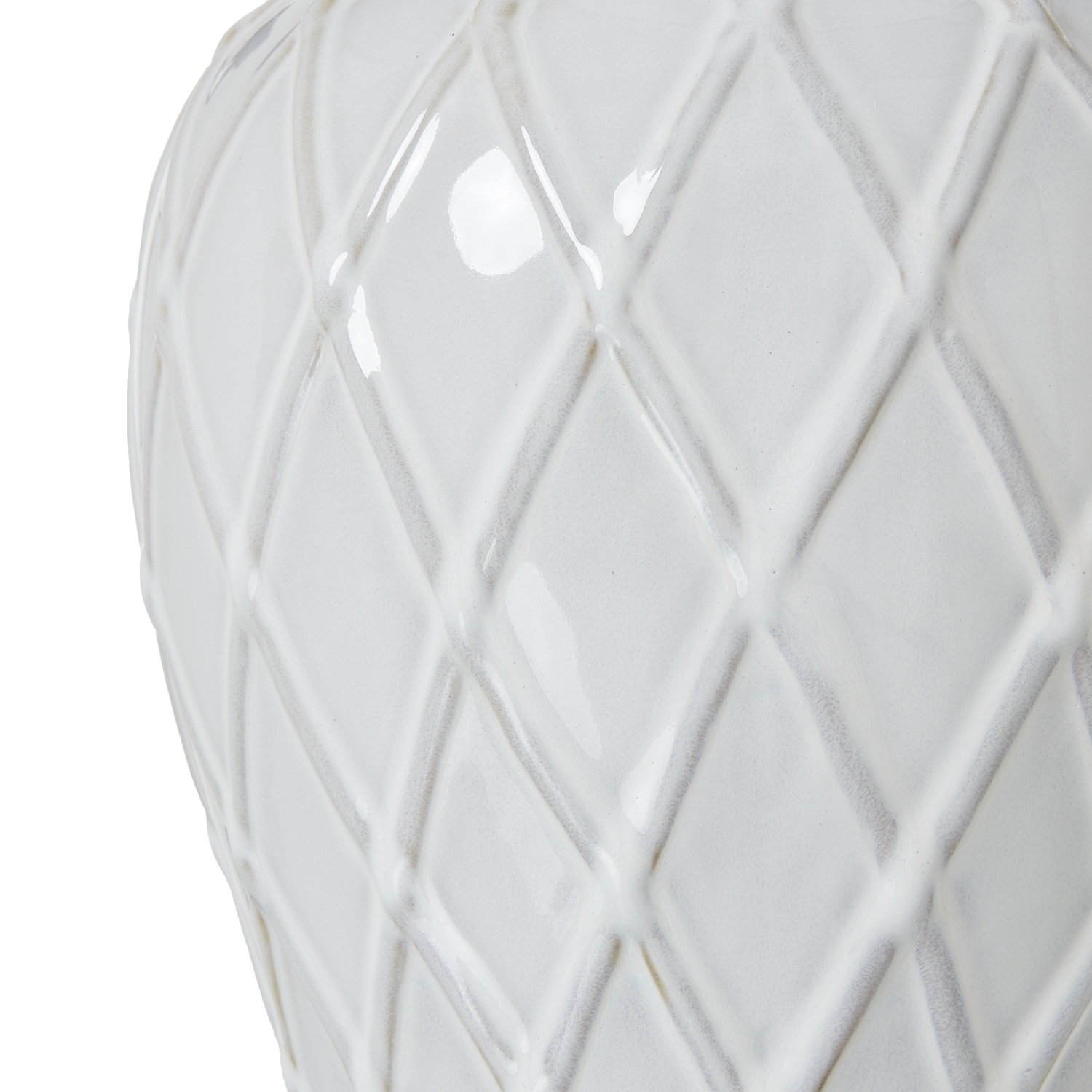 The White Ceramic Ginger Jar Lamp boasts a sophisticated and refined design. Its pristine white ceramic base features a subtly textured diamond pattern, adding depth and visual interest without overwhelming the clean, classic silhouette. This intricate detailing elevates the lamp from simple to stunning, creating a piece that’s both elegant and eye-catching. Crowned with a crisp linen shade, this lamp seamlessly blends traditional form with contemporary appeal. Its versatile style makes it an ideal addition to various interior designs, from modern minimalist to transitional or even updated traditional spaces. Retailers will find this lamp to be a valuable inventory item, appealing to customers seeking to add a touch of understated luxury to their homes. It’s perfect for brightening bedside tables, accenting console tables, or creating ambiance in living areas. Pair this lamp with natural textures, metallic accents, or rich, jewel-toned accessories to create striking visual contrasts. Its adaptable design allows it to complement a wide range of decor styles, making it a smart choice for diverse customer bases. This White Ceramic Ginger Jar Lamp offers timeless elegance and versatile styling potential, promising to be a popular choice among discerning homeowners and interior design enthusiasts alike.